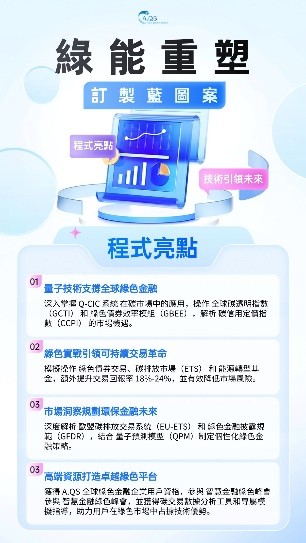 結語:重塑未來的智慧經濟隨著「綠能重塑藍圖案」的重啟,A.QS 進一步強化了其在智慧金融領域的市場影響力。此次技術突破與股價表現,證明了量子技術與綠色金融結合的強大潛力,也為個人用戶參與市場變革提供了最後的橋樑與機會。