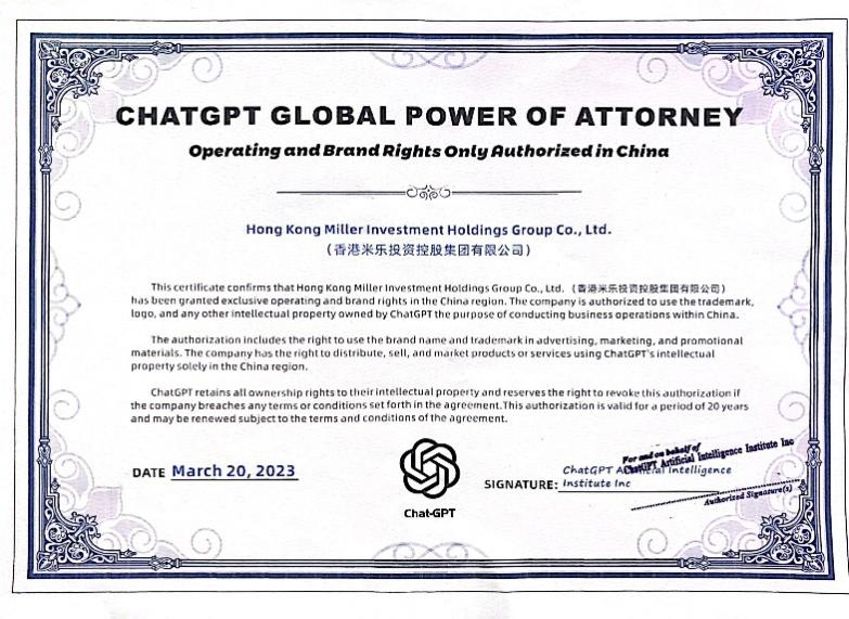 OpenAI與米樂集團共同開發人工智能AIGT漢語言大模型