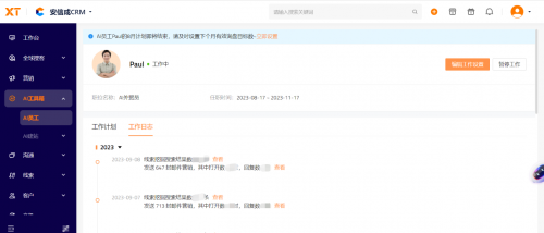 「AI員工」可以理解為外貿企業7*24小時工作的「智能外貿從業員」,在日常外貿場景下,AI員工可以幫外貿企業高效完成工作。對於一個典型的外貿企業,通常會有新客戶獲取、針對老客戶的新產品營銷、跟單、財務收款等角色分工,不同的角色分工涉及不同的工作目標及能力要求。而AI員工則可覆蓋獲客和營銷層面的角色能力,當外貿企業老闆為AI員工設定好工作目標後,AI員工可以根據目標分析任務、制定計劃、並自主調取「安信成CRM」平台的客戶管理工具。此外,作為「安信成CRM」的一項AI數智化工具,AI員工在完成目標工作後會進行總結匯報,每天的工作記錄也會全部記錄在「安信成CRM」系統中,供外貿管理人員隨時調取查閱。由此,大大提升外貿企業的拓展業務效率,外貿業務員或者外貿SOHO公司(Small Office and Home Office)可以把更多的精力花在把意向潛客轉化成訂單。