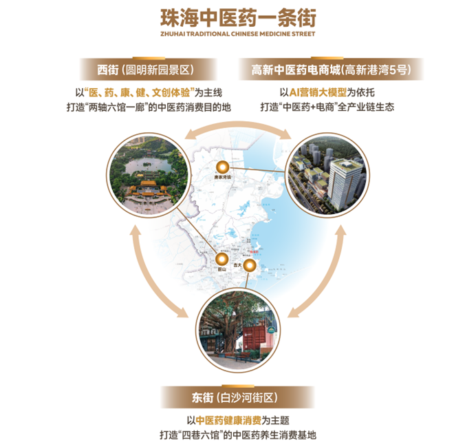 「珠海中醫藥一條街」規劃包括西街、東街、高新中醫藥電商城三大主題場景,共同打造特色鮮明、功能互補、區域聯動、線上線下融合的特色消費新空間,構建中醫藥「產業+消費+文旅」全鏈條體系,推動中醫藥文化傳承創新,助力珠海經濟高質量發展。
