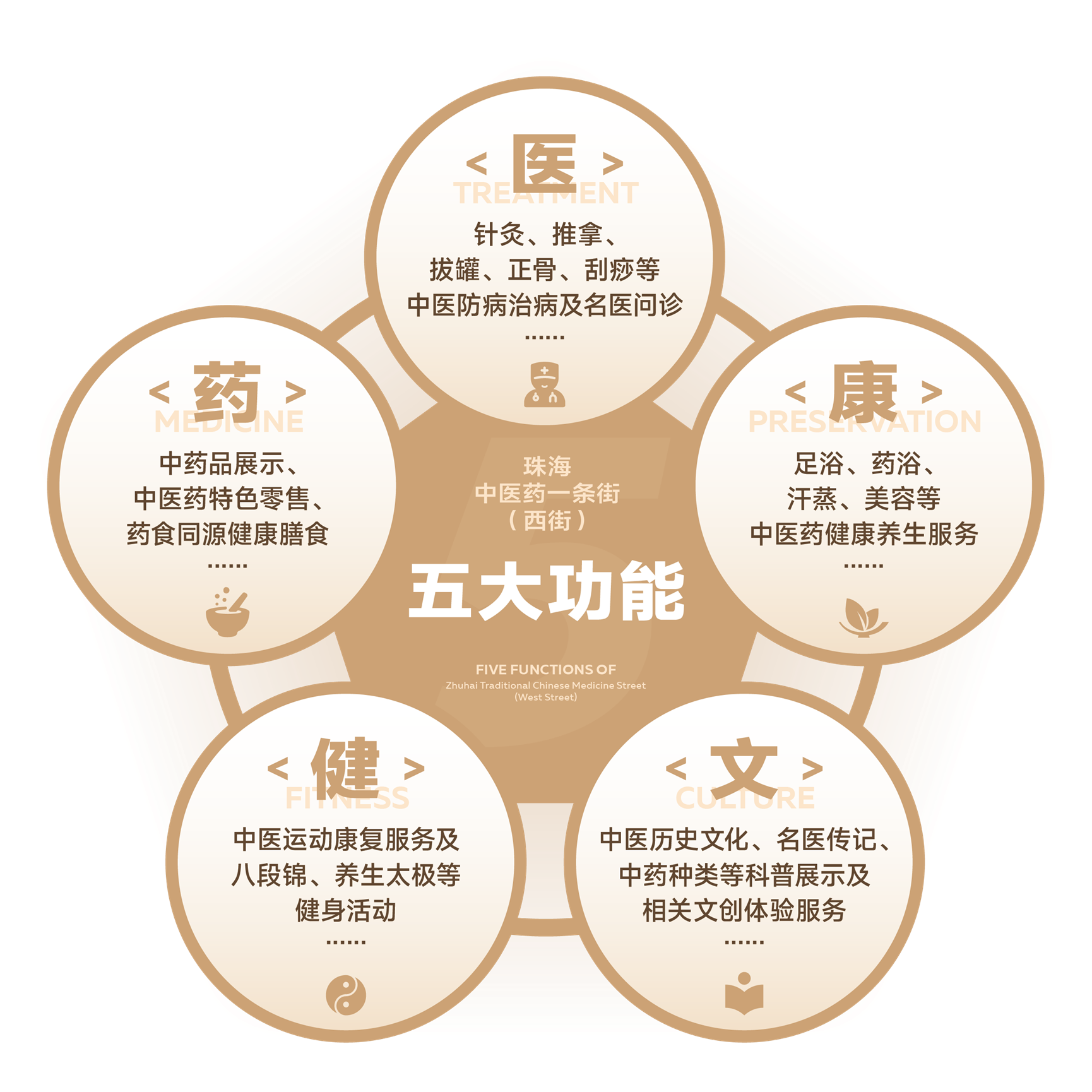 權威指導專業規劃:在充分調研全國各地多個中醫藥主題街區成功經驗的基礎上,在廣州中醫藥大學、廣東省中醫院的指導和境內外中醫藥界權威機構的大力支持下,製定專業的功能發展規劃,打造集「醫、藥、康、健、文」等產學研用功能於一體的中醫藥多元發展新平臺。