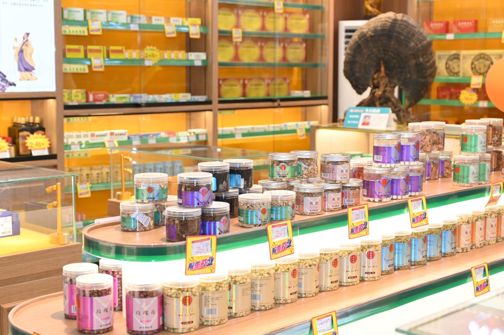 引入同仁堂、廣譽遠、王老吉、杏林康品等中醫藥「老字號」,提供中藥品、茶飲、藥食同源等產品展示銷售,及足浴、藥浴、汗蒸、美容等健康養生服務。同時,不斷解鎖「年輕玩法」,推出「國潮中醫養生奶茶」「養生咖啡」「熬夜水」等更多健康消費的「潮點」「爆點」,拉近中醫藥與年輕人的距離,讓中醫藥健康消費成為一種覆蓋全齡段的時尚生活方式,引領健康消費新潮流。