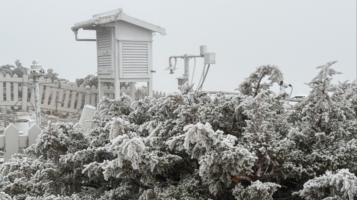玉山氣象站出現霧淞和雨淞。(圖/氣象署提供)