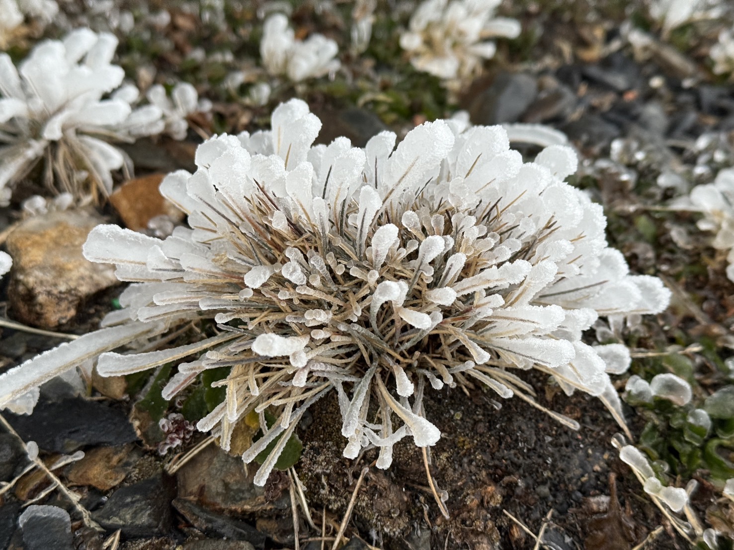 玉山迎風面植物結了一層霧淞。(圖/氣象署提供)
