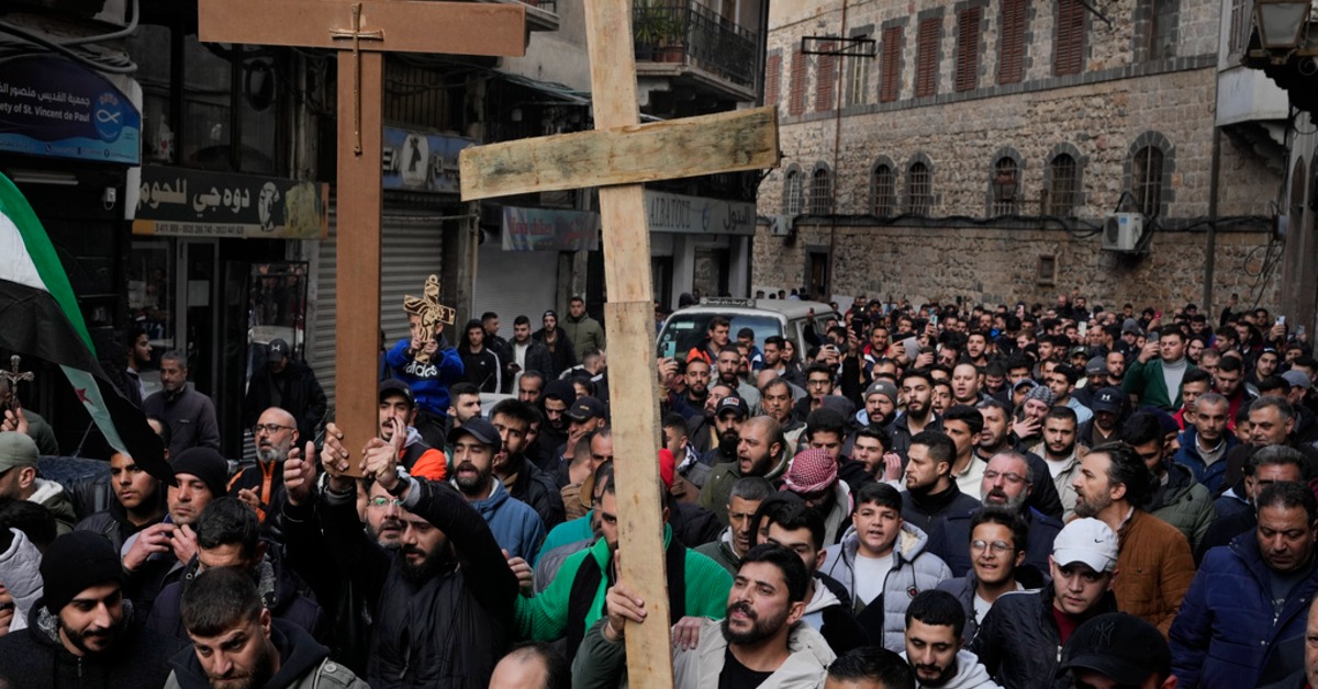 舉起十字架與國旗高喊口號,敘利亞數千名示威者,上街抗議要求新領導者保護宗教少數族群,自從阿塞德政府垮台後,推翻政權的沙姆解放組織領導人,就曾承諾要保護少數族群,如今卻發生疑似針對基督徒的行為,才會引發民眾怒火。而沙姆解放組織也表示,涉嫌縱火的人已經遭到拘留,並會盡快修復耶誕樹。