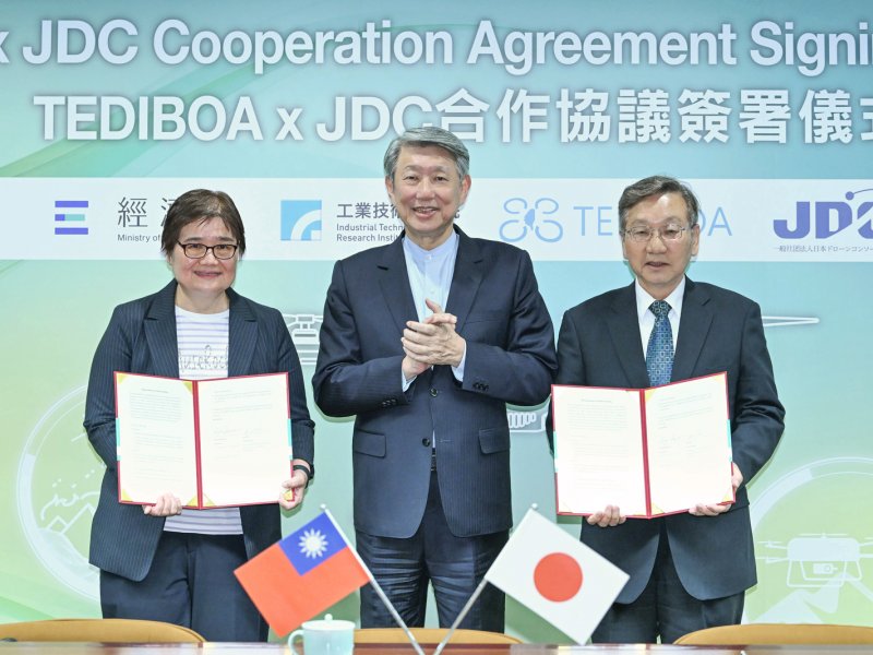日本與臺灣在經貿及科技一直是極佳的合作夥伴,為促成臺灣無人機產業交流,在經濟部推動下,工研院促成「台灣卓越無人機海外商機聯盟(TEDIBOA)」,與「日本無人機聯盟(Japan Drone Consortium;JDC)」簽署產業合作備忘錄(MoU),期待雙方利用彼此優勢,建立臺日無人機非紅供應鏈,並在防災、救災及自主飛行測試領域合作。台灣卓越無人機海外商機聯盟(TEDIBOA)協同主席吳秀蕙更感謝,郭部長這半年來積極推動無人機整合平台,成立「台灣卓越無人機海外商機聯盟」,更在短短六個月的成果遠超過廠商過去十年的努力。