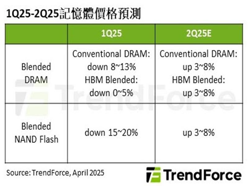 TrendForce指出,受到積極備貨潮帶動,第二季的DRAM和NAND Flash合約價調漲幅度皆較原本預期擴大。然而,這波漲勢的動能可能僅限於第二季。主要來自對關稅敏感的美系品牌和有出口需求廠商的記憶體需求,將因為90天寬限期提前於2025年上半年釋放,改變了傳統的季節性模式。而美國關稅的最終走向,將成為下半年記憶體市場供需與價格變化的最重要觀察指標。