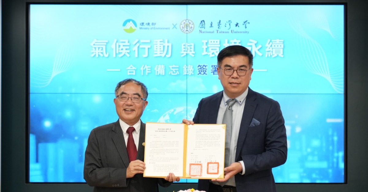 彭啟明代表環境部,與國立臺灣大學簽署合作協議。(圖/翻攝自彭啟明臉書)