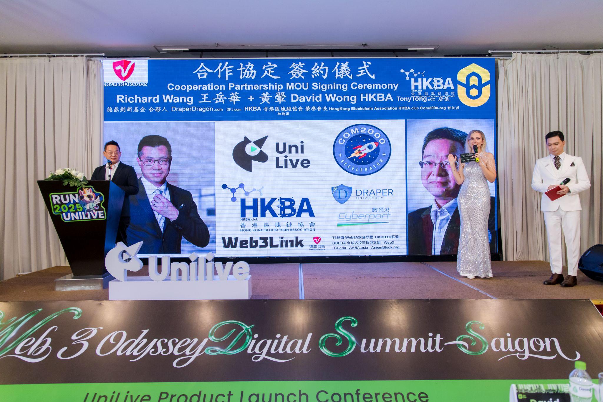 香港區塊鏈協會(HKBA)副主席、榮譽會長David Wong在開幕致辭中強調:“越南正成為東南亞Web3創新的核心樞紐。UniLive選擇在此發佈全球戰略,不僅彰顯其對新興市場的重視,更體現了用技術賦能區域數字經濟轉型的決心。”作為亞洲區塊鏈領域的權威聲音,David Wong從監管趨勢、技術融合及生態協作三方面,為東南亞Web3發展指明方向,並高度評價UniLive“用戶主權回歸”的核心理念。