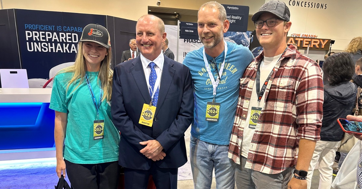 阿貝爾(Greg Abel,左二)經董事會投票通過,2026年起出任公司總裁兼執行長人事案。(圖/美聯社)