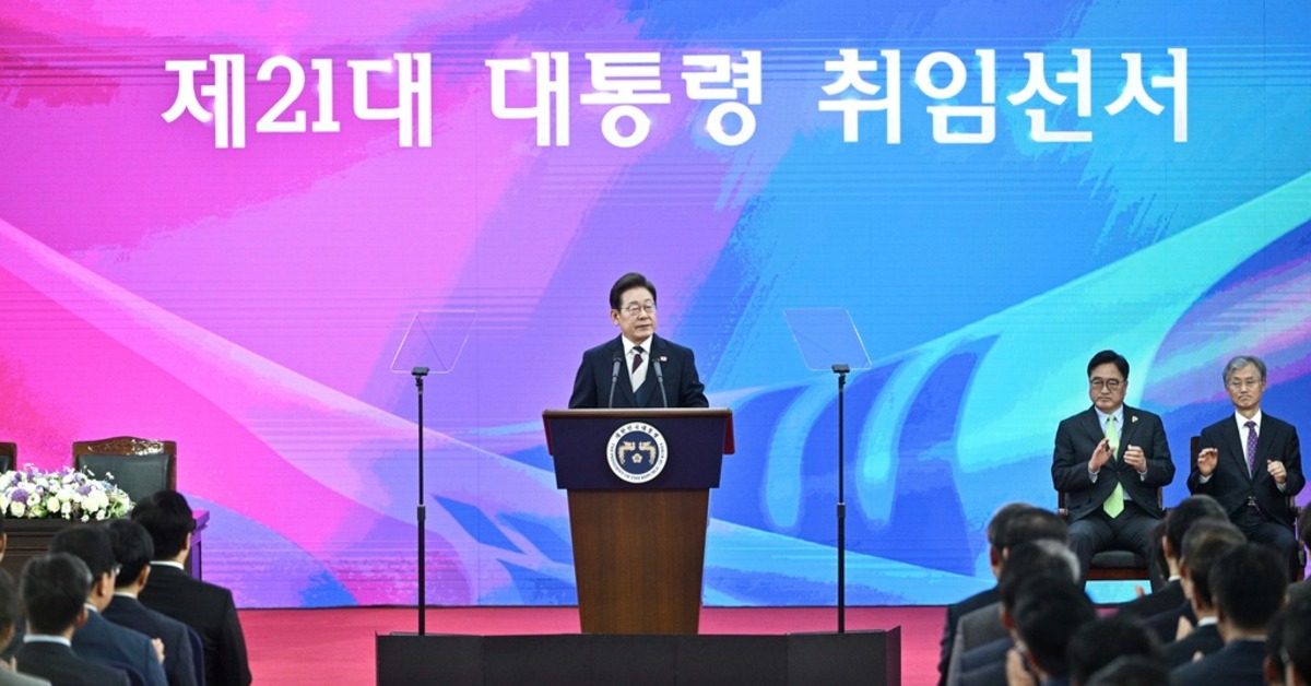 李在明在就職演說中表示,自己肩負沉重責任,是時候讓遭到破壞的民主制度重新站起,無論國民在大選中支持誰,他將全心全意服務全體國民。