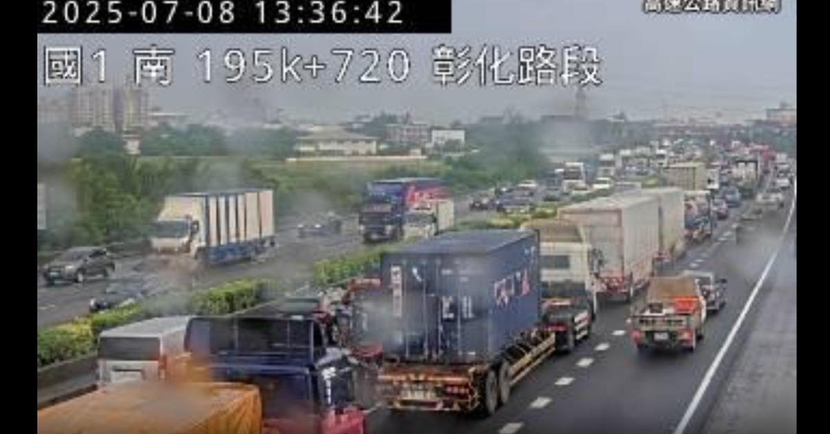 今狂風暴雨襲擊彰化地區,彰化市與周邊鄉鎮午後進入大雷雨警戒,國道1號彰化路段也隨即傳出多起交通事故與異常,南向車道陷入壅塞,路線車流出現紅爆,一度回堵6公里。
