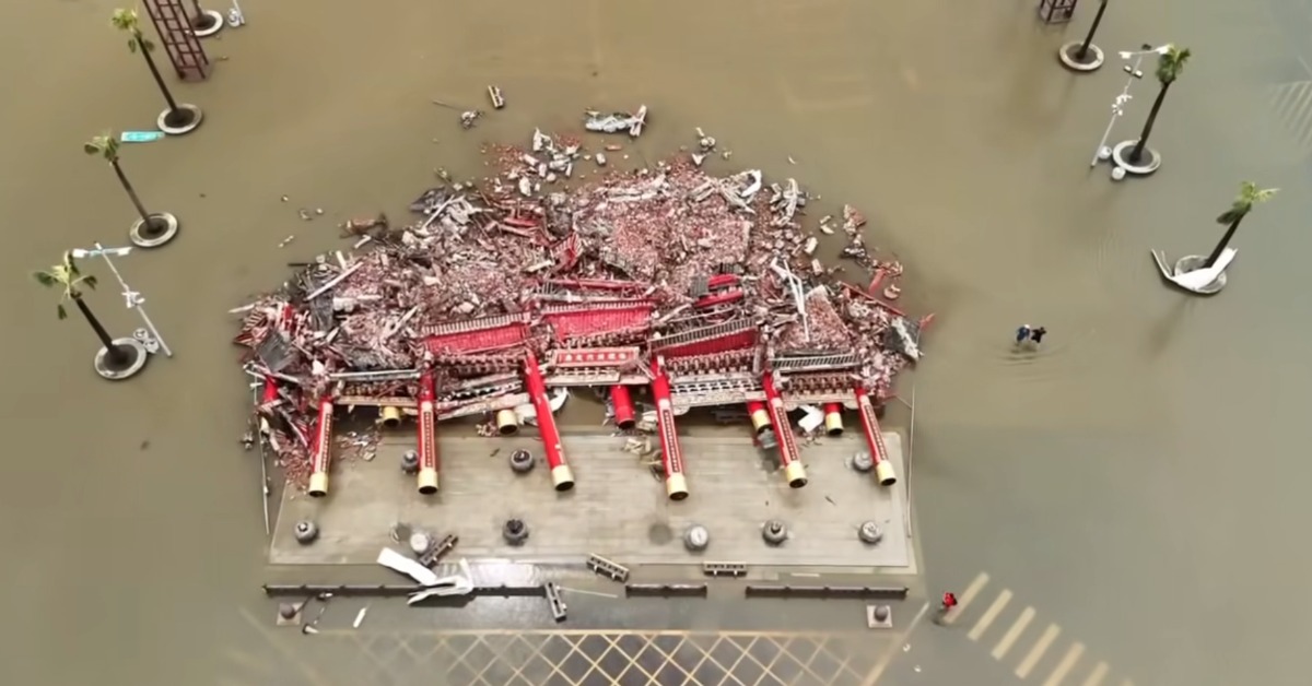中颱丹娜絲襲台重創中南部,其中位於台南北門區、被定為國家二級古蹟的「南鯤鯓代天府」牌樓,不敵15級強陣風應聲倒塌,整個牌樓泡在水裡,現場滿目瘡痍。對此,民俗專家廖大乙指出,南鯤鯓代天府牌樓倒塌存在警示意味,並點名近日的末日預言、台中豐原五口命案,警告「邪惡之人必遭報應」。