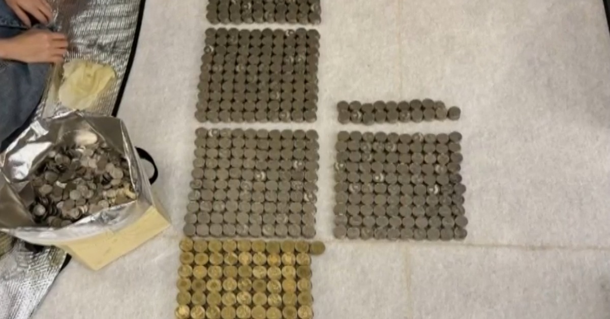 高雄A先生拿了10多萬金額的銅板想要去台灣銀行換外幣,但行員只拿了部分銅板剩下的要自己拿回家。(圖/東森新聞)